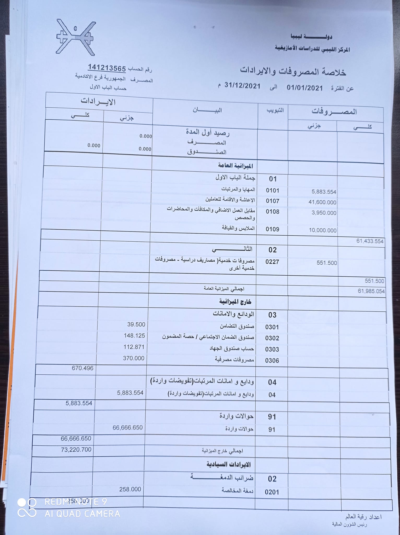 خلاصة المصروفات والأيرادات لسنة 2022 / 2972 (الحساب الختامي) للمركز