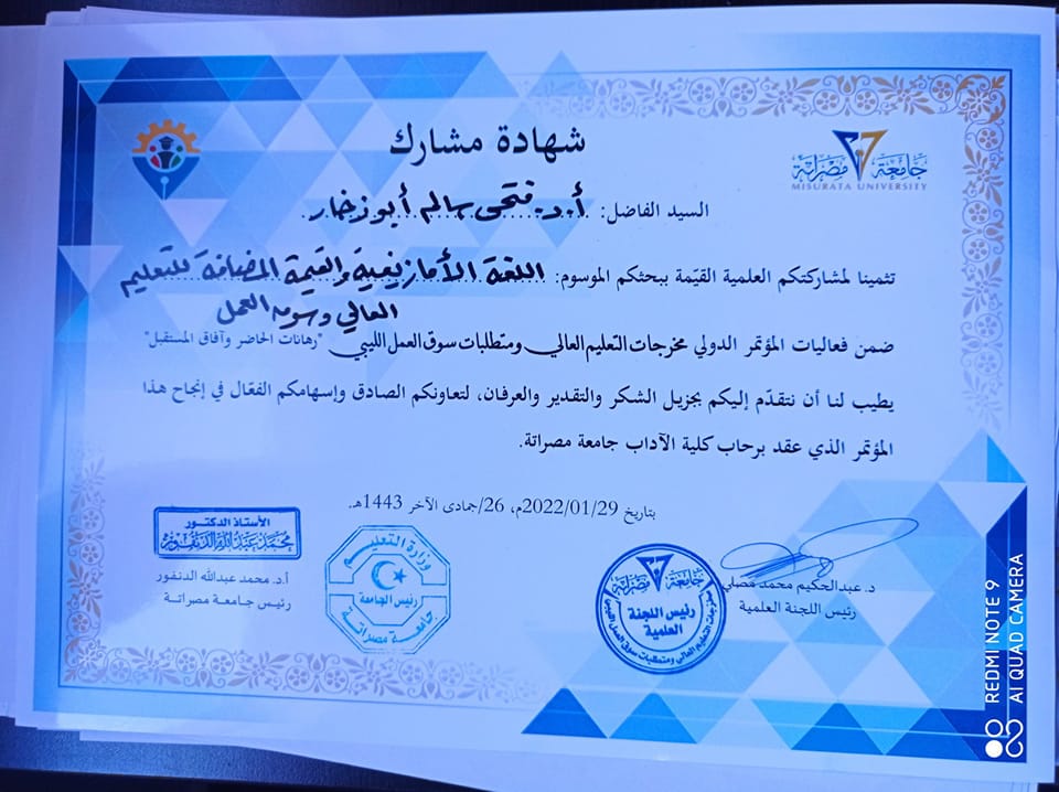 مشاركة المركز بورقة علمية في أعمال المؤتمر الدولي حول التعليم العالي ومتطلبات سوق العمل الليبي